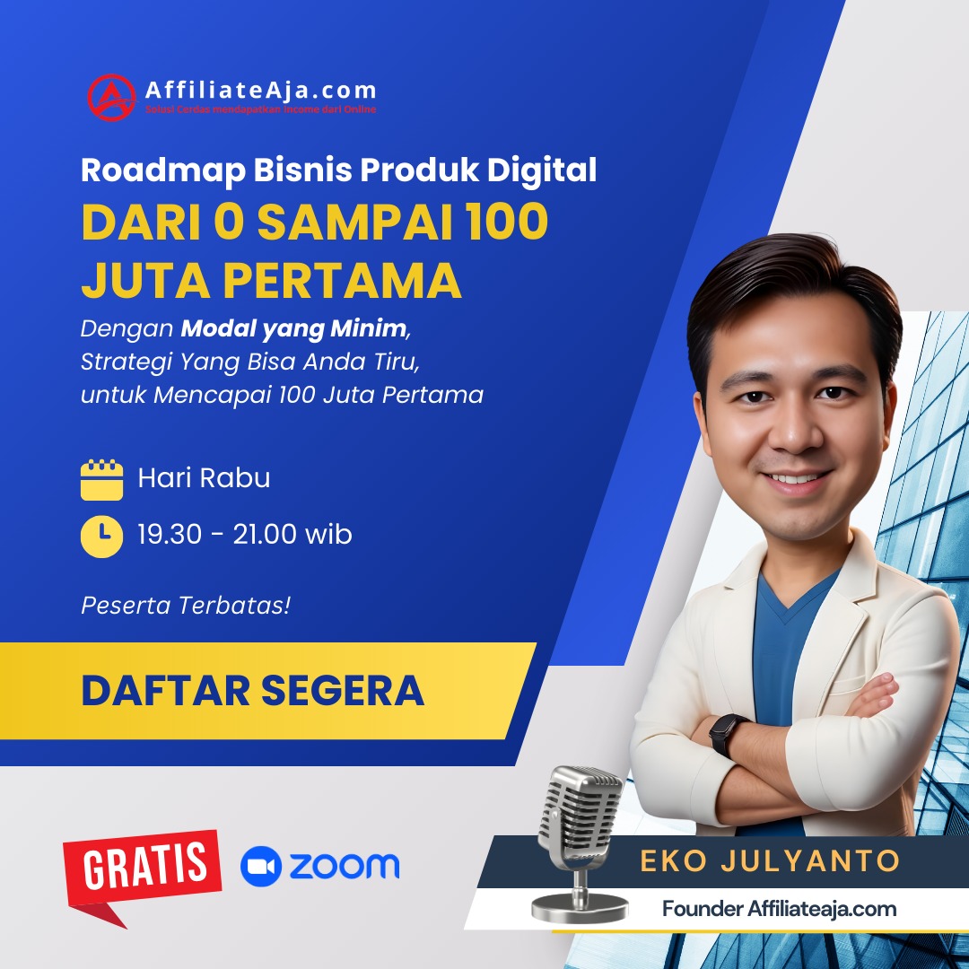 Di webinar ini kamu akan melihat roadmap realistis bagaimana bisnis produk digital bisa bawa kamu menuju 100 juta pertama, meski mulai dari nol.